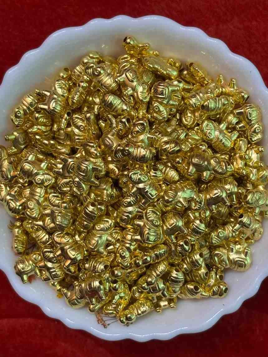 Celebrate heritage craftsmanship with Faizu Stores Elephant Beads, a favorite for traditional Indian embroidery and modern bohemian art. These beads are meticulously shaped to capture the majestic elephant profile, making them ideal for creating centerpiece motifs, decorative tassels, or themed borders on bridal lehengas. Their tarnish-resistant coating ensures your work maintains its rich glow, while the smooth-drilled holes allow for easy application with Aari needles or standard hand-sewing tools. Whether you are designing festive wear or unique jewelry, these beads bring a touch of regal elegance.