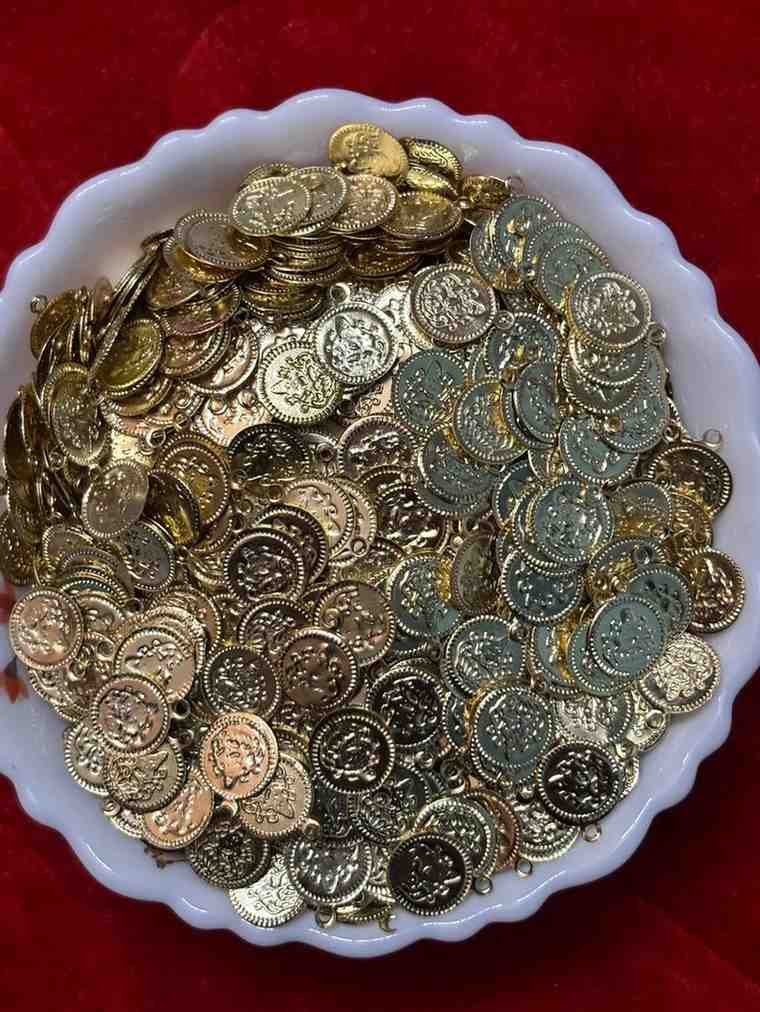 Embrace the beauty of tradition with our Premium Kasu Coins. These classic temple-style coin beads feature intricate embossed motifs and a rich metallic finish, making them essential for Temple jewelry, bridal Aari work, and ethnic dance costumes. Lightweight, symbolic, and Ready to Dispatch, they add a royal “Kasu Mala” aesthetic to any garment or accessory.