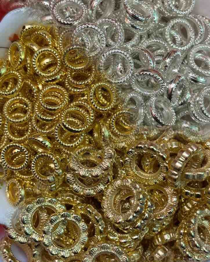Enhance your embroidery with our Premium Ring Beads. These unique, circular beads feature a hollow center and a high-luster finish, making them perfect for Aari work, stone-setting frames, and decorative jewelry motifs. Lightweight, elegant, and Ready to Dispatch, they are the ideal choice for adding a sophisticated 3D texture to your creative projects.